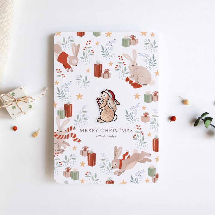 Adorable rabbits, seasonal plants and thousands of gifts are featured on the Merry Bunny greeting card. It's a festive picture full of tenderness, sure to melt the hearts of the little and big elves in your life.