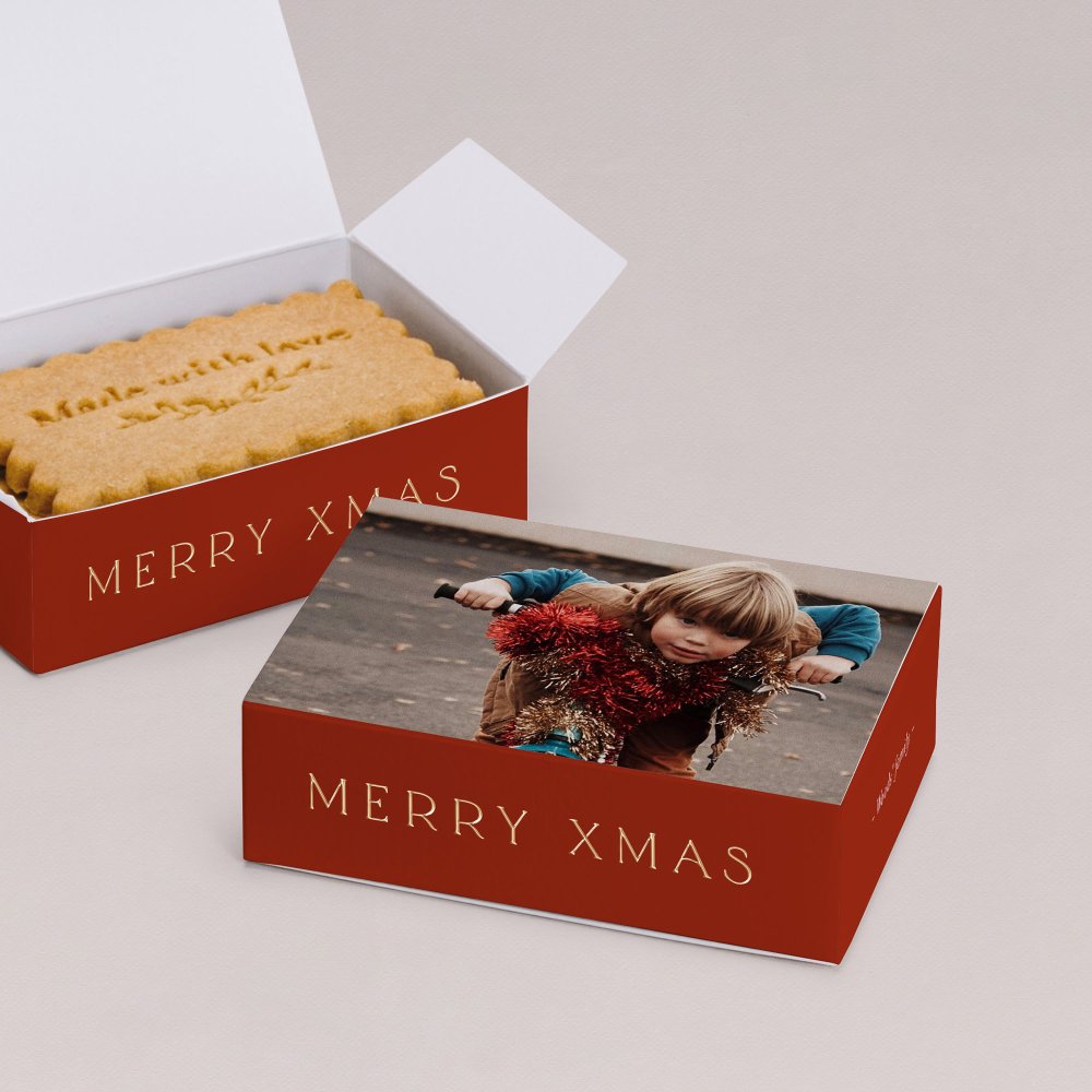 Specially designed, for 7x5cm biscuits, this box can contain up to 4. Assemble your boxes, then fill them with your personalised handmade biscuits! Share your recipe with us if you're especially proud of them. We do not provide the biscuits, we simply make the beautiful paper boxes that match your whole Christmas stationery.